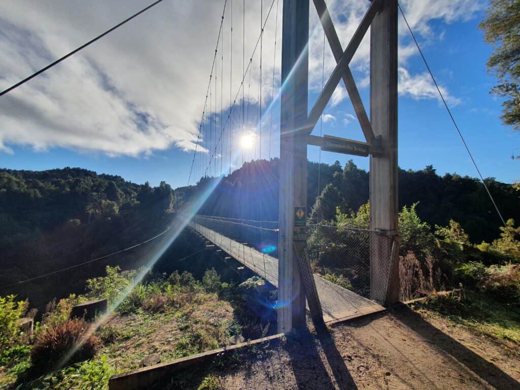 Was great to get out of the office yesterday and onto the “Timber Trail” (centre of North Island). Was a beautiful crisp clear sky morning. In these photos we are collecting bridge vibration data at the Maramataha Suspension Bridge. This is NZ’s second longest suspension bridge (141m span).